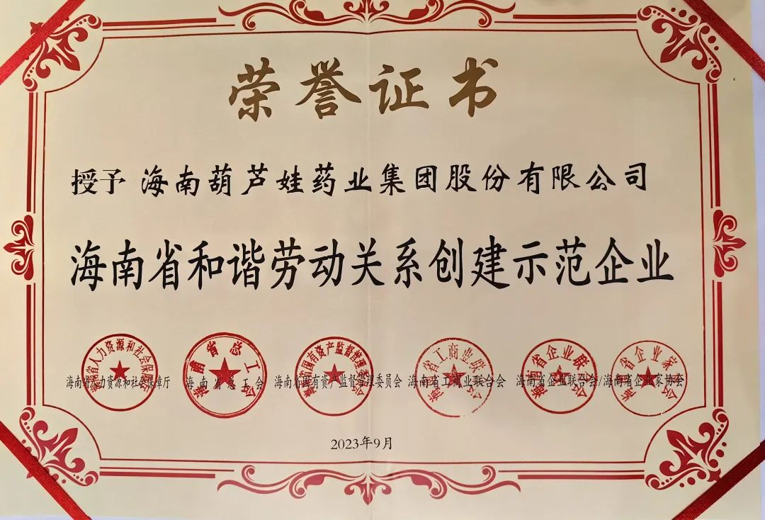 Z6·尊龙时凯药业集团获评“海南省和谐劳动关系创建示范企业”